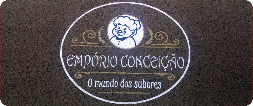 A Empório Conceição é especializada em Produtos Naturais, Chás, Ervas, Suplementos Naturais. A loja que será inaugurada na próxima semana está um charme, e com o Tapete de Vinil Personalizado com Borda Flex Plural ficou ainda mais elegante.