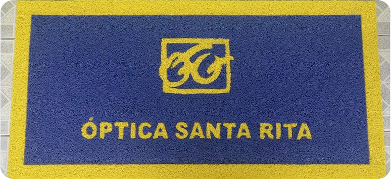 Localizada no centro de Campinas/SP a Óptica Santa Rita adquiriu um Tapete de Vinil Personalizado no tamanho de 1,20 x 0,60 para a entrada da loja, a combinação de cores deu ainda mais destaque ao logotipo valorizando a marca!