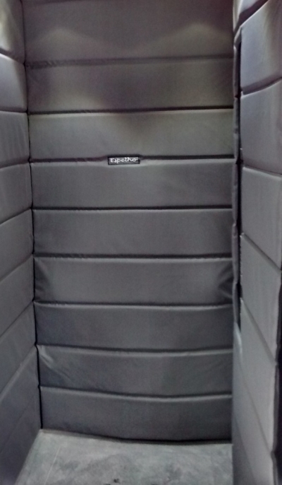 Acolchoados confeccionados sob medida da cabine do elevador, com opção de diferentes tecidos e cores.